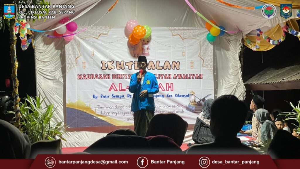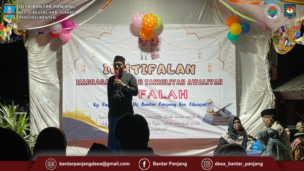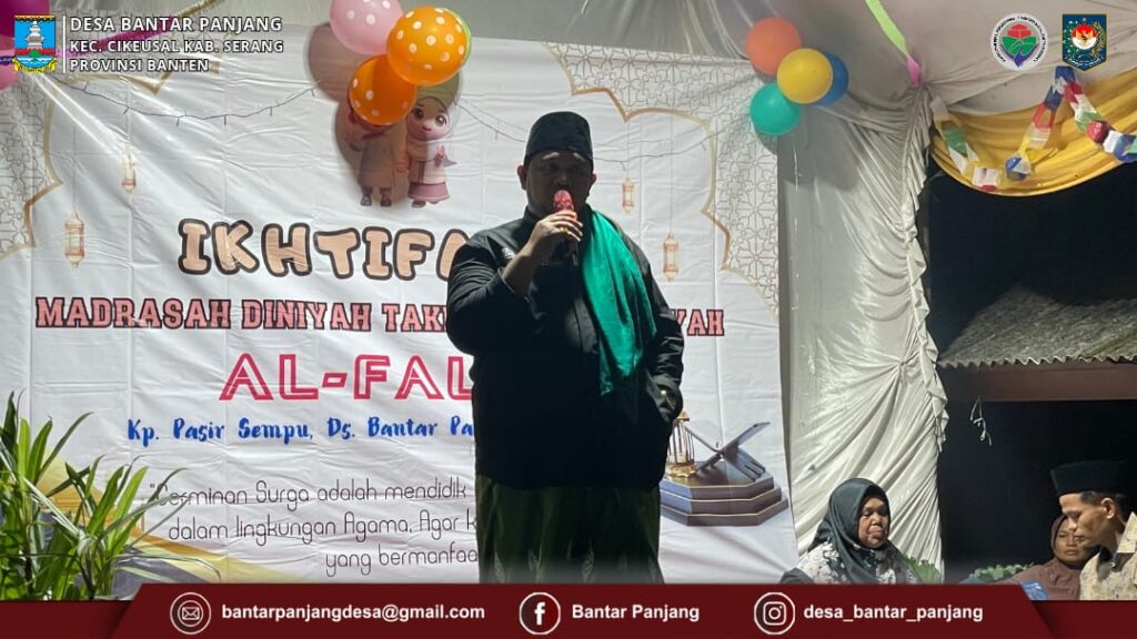 Dalam kesempatan ini kepala desa bantar panjang Bpk. SUharjo Noto Susanto memberikan sambutan membuka acara Ikhtifalan ini, dilanjut oleh Ustd. Abdul Rojak selaku tokmas dan RW.002 dan Kepala MDTA AL-falah Bpk. Saepudin S.Ag. menjelaskan mekanisme pembelajaran kepada wali murid.