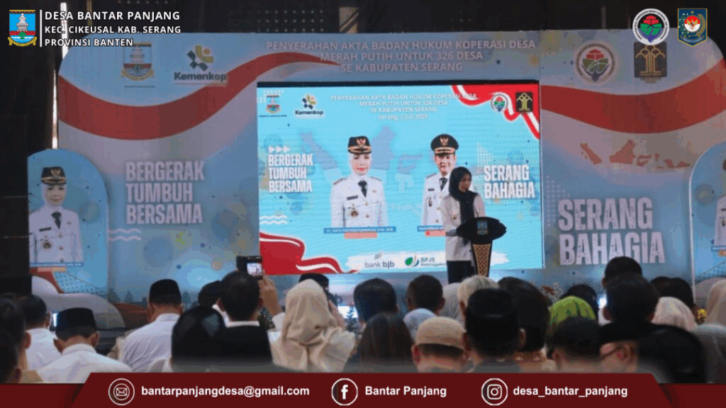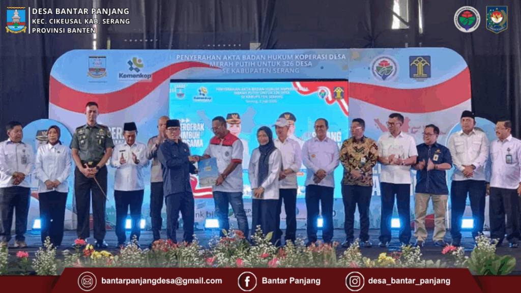 Sebanyak 326 desa di Kabupaten Serang resmi menerima Akta Badan Usaha Koperasi Desa Merah Putih dalam sebuah acara penyerahan simbolis yang diberikan langsung oleh Menteri Desa dan Pembangunan Daerah Tertinggal Yandri Susanto, Penyerahan ini menandai langkah besar dalam mendorong pemberdayaan ekonomi desa serta penguatan kelembagaan koperasi sebagai pilar ekonomi kerakyatan.