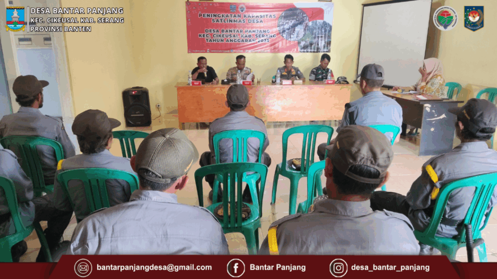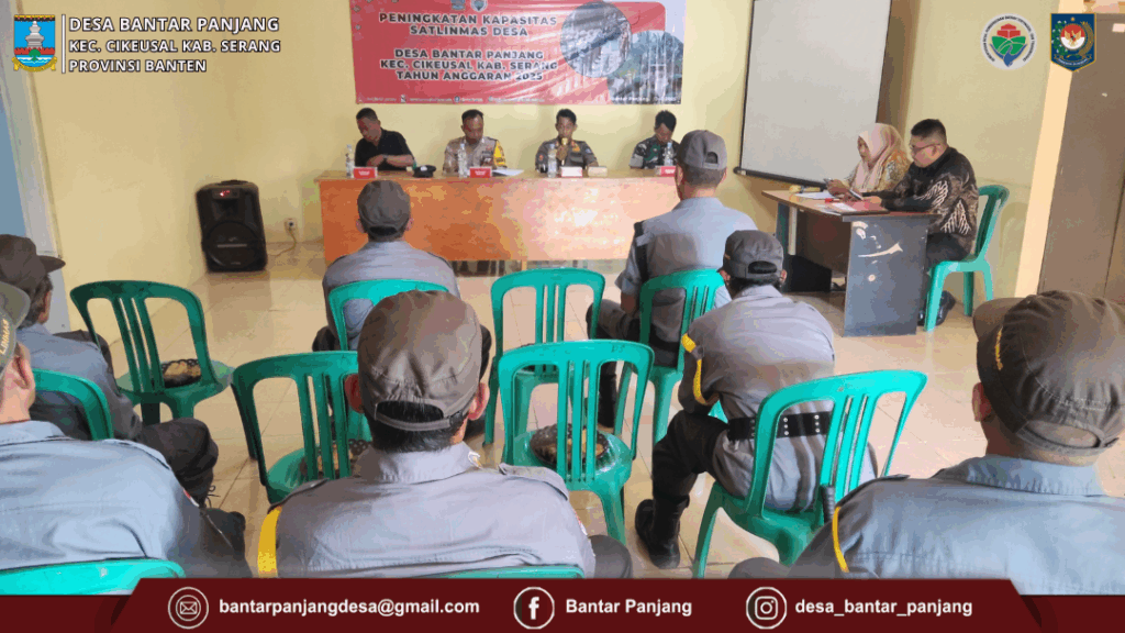 Kamis, (24/07/2025). Bertempat Di Aula Desa Bantar Panjang Pemerintah Desa Bantar Panjang melaksanakan Kegiatan Peningkatan Kapasitas Satlinmas Desa Bantar Panjang Narasumber kali ini dari pihak trantib kecamatan Toni Fathoni, Babinsa Pak Hary MR, Bhabinkamtibmas Pak Mahmudin.