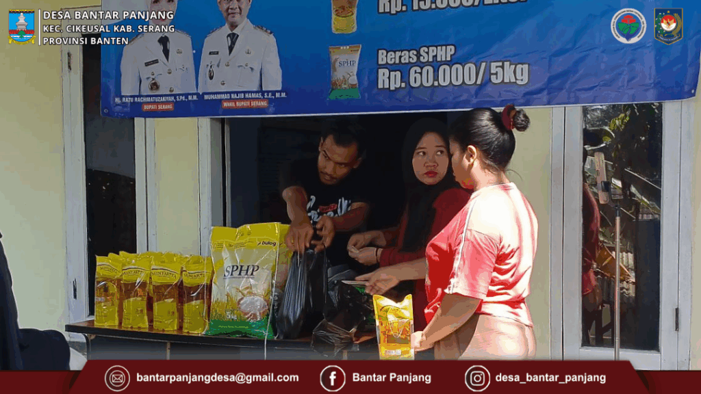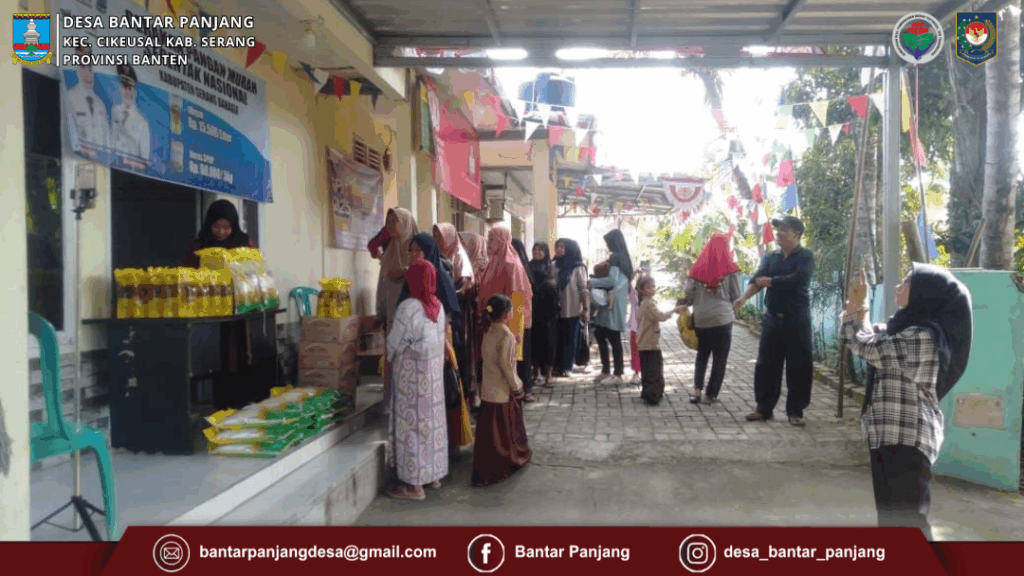 Sabtu, (30/08/2025). Bertempat di Kantor Desa Bantar Panjang, Pemerintah Kabupaten Serang Menggelar gerakan pangan murah Serentak Nasional di 16 kecamatan se kabupaten serang khususnya desa bantar Panjang yang diselenggarakan oleh Koperasi Desa Merah Putih. Menjual sembako murah yang berasal dar bulog dengan harga Minyak Rp.15.000/Liter dan Beras 60.000/5Kg dalam kegiatan ini di sambut positif oleh Masyarakat.