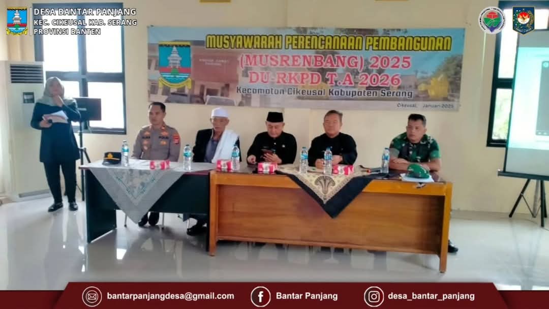 Berita Desa 2025 kegiatan Musyawarah Rencana Pembangunan (Musrenbang) tingkat Kecamatan Tahun 2025 Untuk Daftar Usulan Rencana Rencana Kerja Pemerintah Daerah Kabupaten Serang Tahun 2026 Baca Selengkapnya Februari 7, 2025